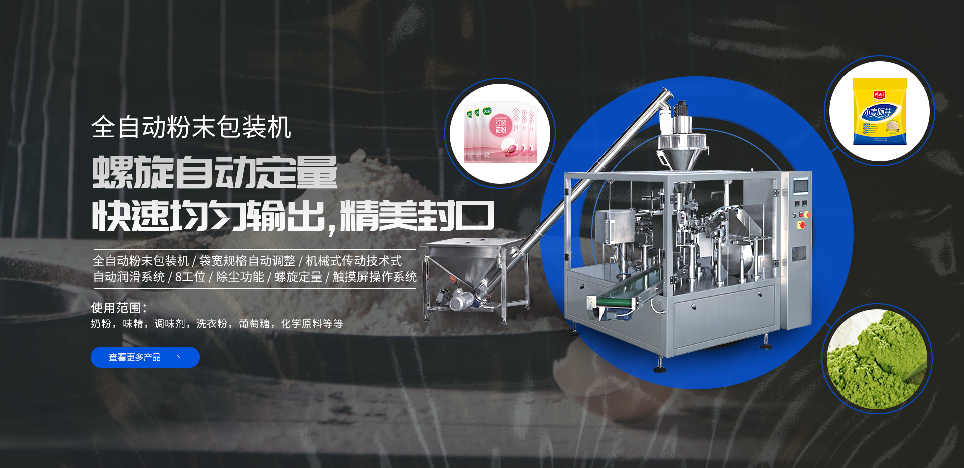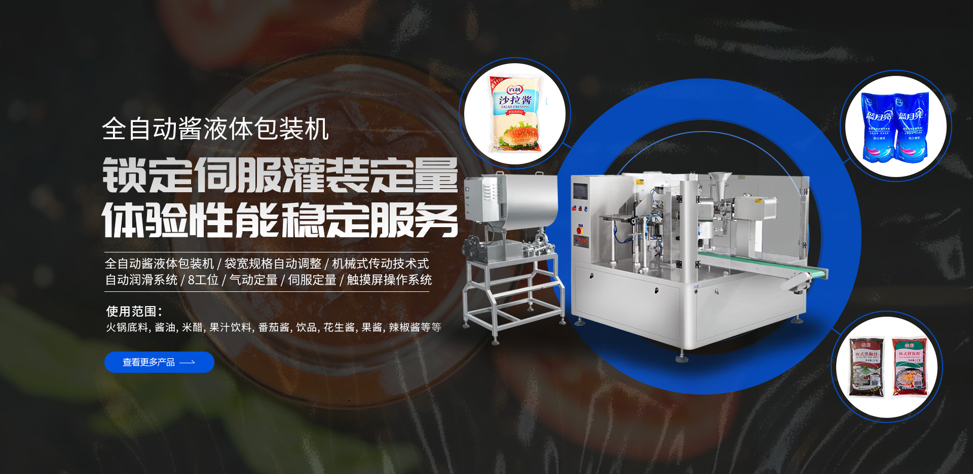 以上多種不同功能的包裝生產線設備(粉末包裝機、給袋式包裝機、全自動包裝機、顆粒|液體|食品|醬腌菜包裝機),請根據需求選擇,如有疑問請聯系我們的顧問